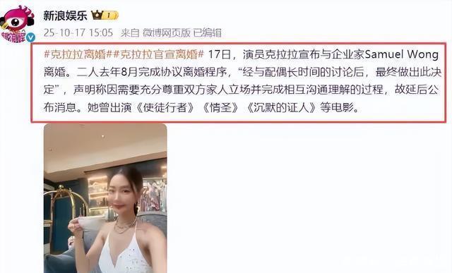 2025年10月17日,韩国女星克拉拉的经纪公司发布了一则声明, 宣称公司艺人克拉拉在去年的八月份,已经与丈夫启动离婚。